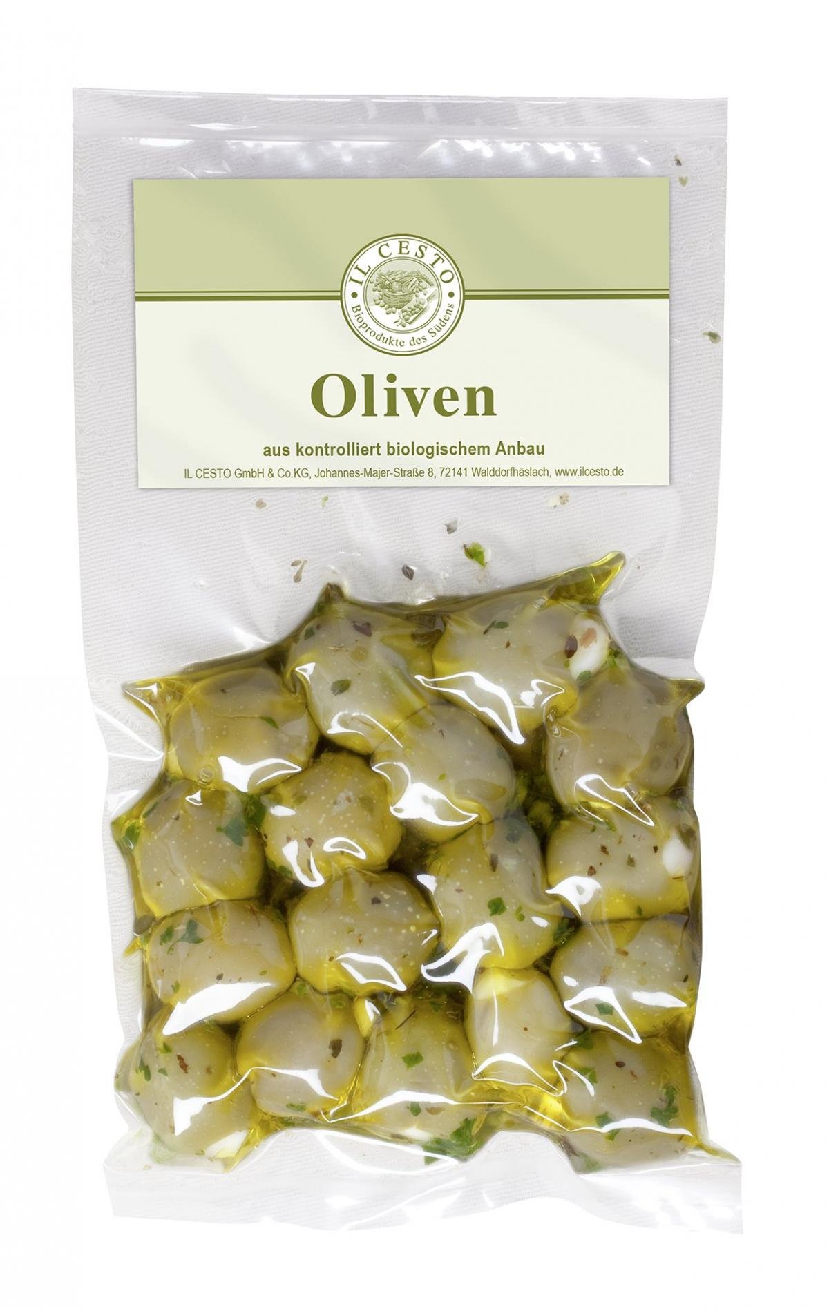 Griech. Oliven mit Knoblauch gefüllt, Beutel