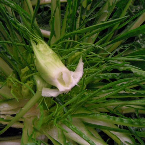 PUNTARELLE oder auch Vulkanspargel, ist eine Varietäten des Chicorées, die in Italien häufig Verwendung in der regionalen Küche findet. Der Geschmack ist typisch für den Chicorée leicht bitter. Seine Bitterstoffe sind es, die ihn so gesund machen. Wir bekommen das Gemüse aktuell aus Apulien, Italien.