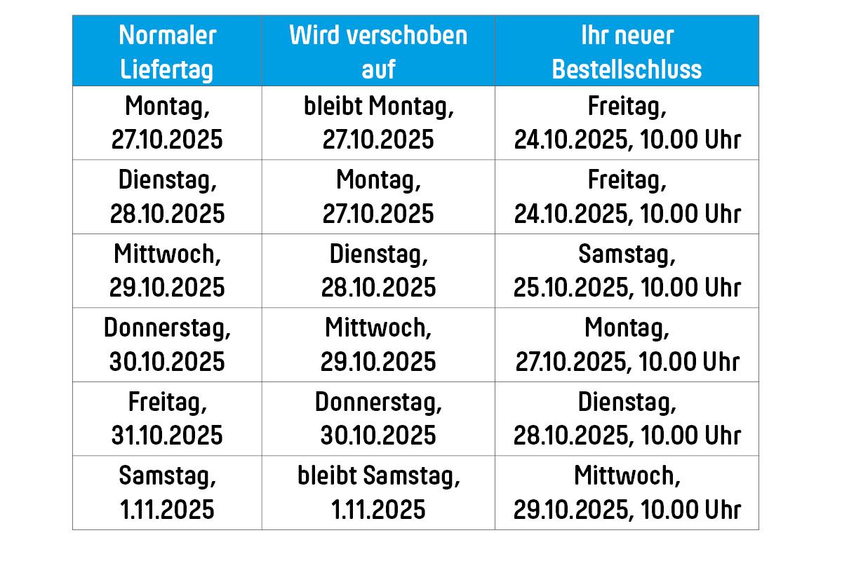 Bitte beachten Sie diese Veränderungen für Ihre Einkaufsplanung. Bei Fragen nehmen Sie einfach Kontakt zu uns auf.