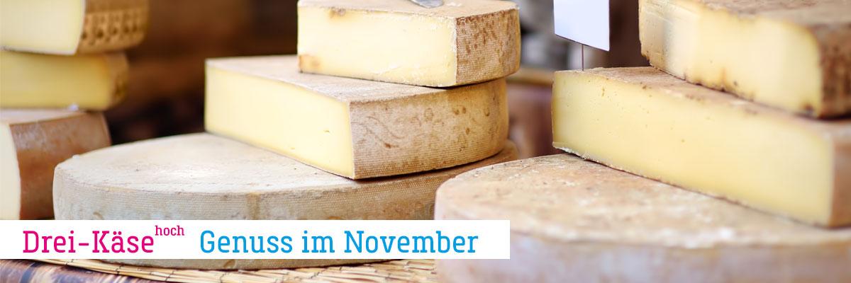 Dunkle Jahreszeit, gemütliches Kaminfeuer, vielleicht ein dunkler Rotwein oder ein kühles anderes Getränk und dazu ein leckeres Stück Käse. Für den November hat sich unsere Käseabteilung drei ganz besonders leckere Sorten überlegt. Sie sind im Geschmack vollmundig und kräftig und stammen alle drei aus der Schweiz.  Alle drei Sorten sind Schnittkäse und punkten auf der Käseplatte ebenso wie auf der Pausenstulle.