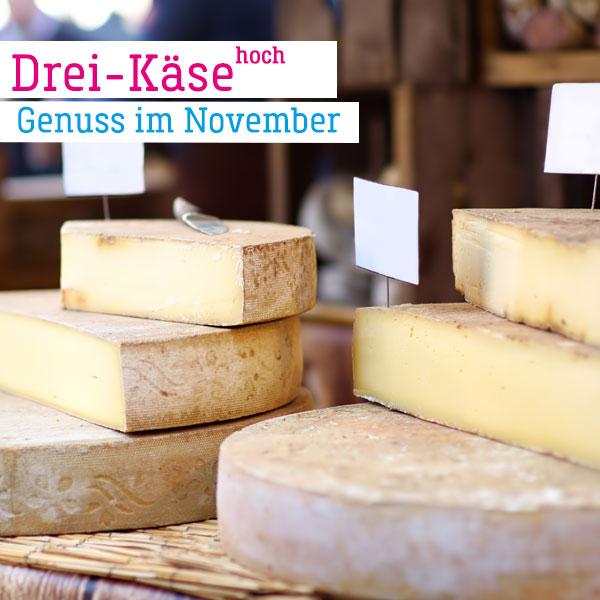 Alle vier Wochen neue Käsesorten entdecken - monatlich unsere Aktion "Drei-Käse hoch"