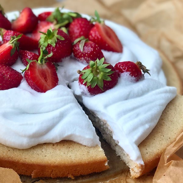 Erdbeerkuchen mit Kokoscreme und Biskuit