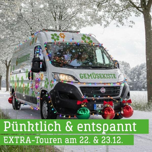 Damit Ihre Festtage so köstlich werden wie geplant, liefern wir Ihnen alle Bio-Lieblingsprodukte bequem vor die Haustür – ganz ohne Stress im Weihnachtsverkehr. Wählen Sie im Lieferkalender einfach Ihren EXTRA-Tour-Termin aus und füllen Sie Ihren Warenkorb mit über 3000 Bio-Produkten: von Gemüse & Obst bis hin zu Feinkost.