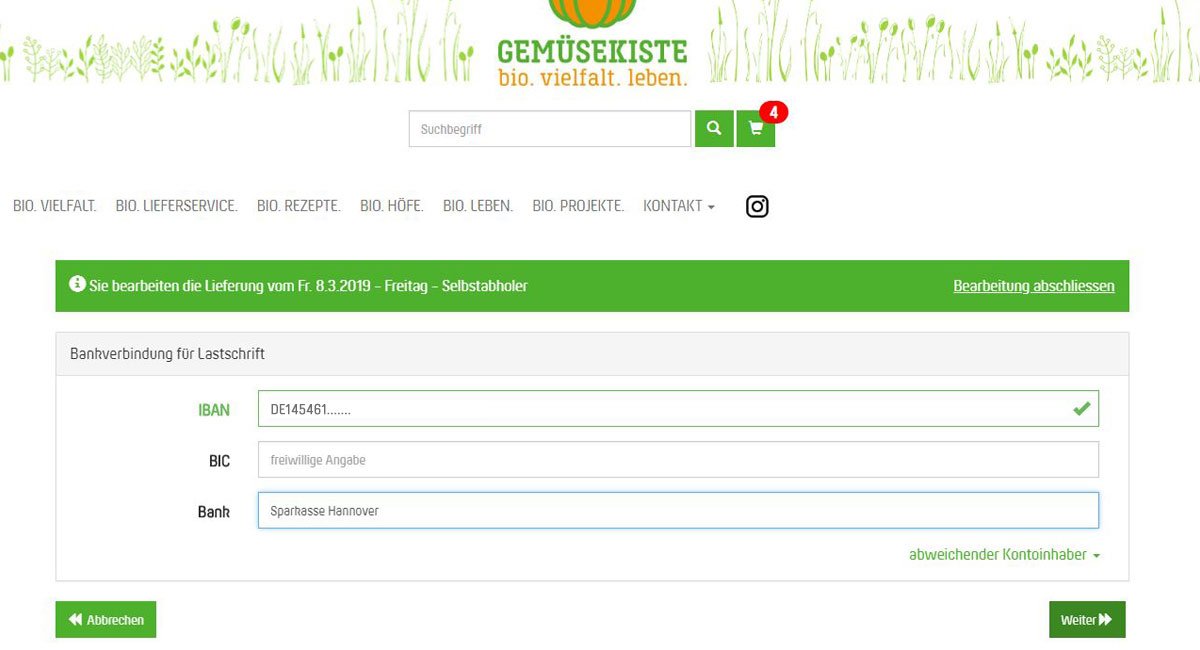 Einfach Ihre Bankdaten eintragen (evtl. den abweichenden Kontoinhaber beachten!).