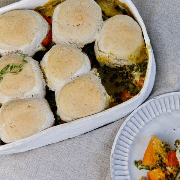 Die Lin­sen und das Gemüse waschen, den Kür­bis hal­bie­ren, ent­ker­nen und in Wür­fel schnei­den. Möh­ren in dün­nere Stü­cke schnei­den und die Enden weg­schmei­ßen. Den Man­gold in Stü­cke und die Blät­ter in dünne Strei­fen schnei­den. Das Gemüse wür­zen, eine Auf­lauf­form ein­ölen und Gemüse und Lin­sen hin­ein­ge­ben. Den Ofen auf 200 °C Ober-/ Unter­hitze auf­hei­zen. Kokos­milch über das Gemüse gie­ßen. Den Teig erneut durch­kne­ten und zu klei­nen Kugeln for­men. Die Kugeln dann auf den Auf­lauf set­zen, sodass sie mög­lichst den gesam­ten Auf­lauf bede­cken kön­nen.