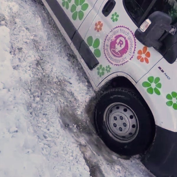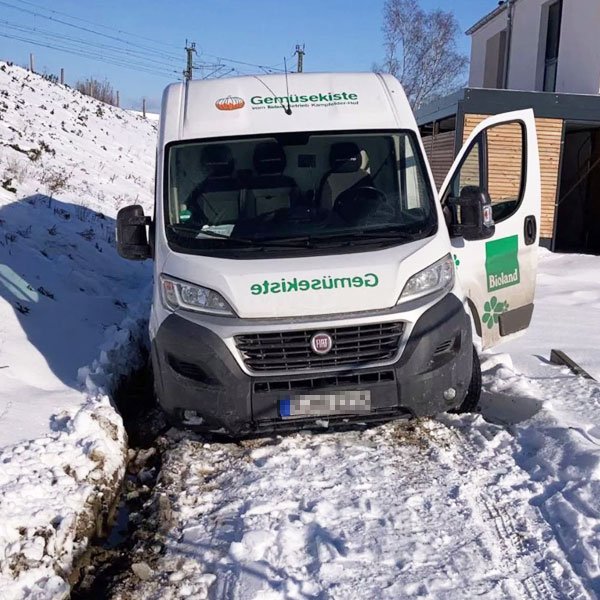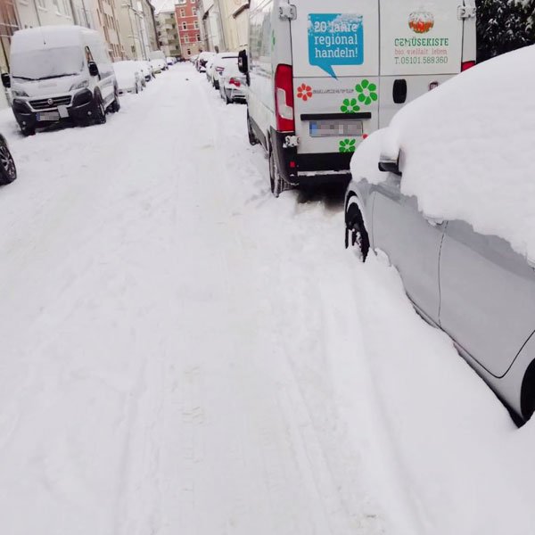 Die Wetter- und Verkehrslage der vergangenen Woche stellte Euch mit beeindruckenden Straßenverhältnissen vor besondere Herausforderungen. Neben den vielen Gemüsekisten waren diesmal auch Schneeschaufeln und Abschleppseile mit an Bord, die auch zahlreich