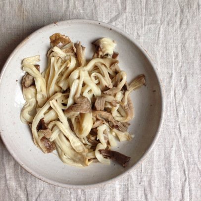 Die Pilze in einem Dampfgarer geben und etwa 10 bis 12 Minuten garen. Anschließend aus dem Topf nehmen und in einen tiefen Teller legen, da die Pilze Flüssigkeit verlieren könnten. Mit Hilfe von zwei Gabeln die Pilze der Länge nach grob „zerpflücken“. Die Pilzstücke mit etwas Salz und ½ TL geräuchertem Paprikapulver vermengen und beiseitestellen.
