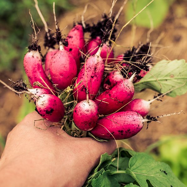 Radieschen eignen sich zum Snacken oder geraspelt und in feinen Scheiben im Salat. Das Grün eignet sich für Gemüse Smoothies, Suppen und als Salatbeilage.