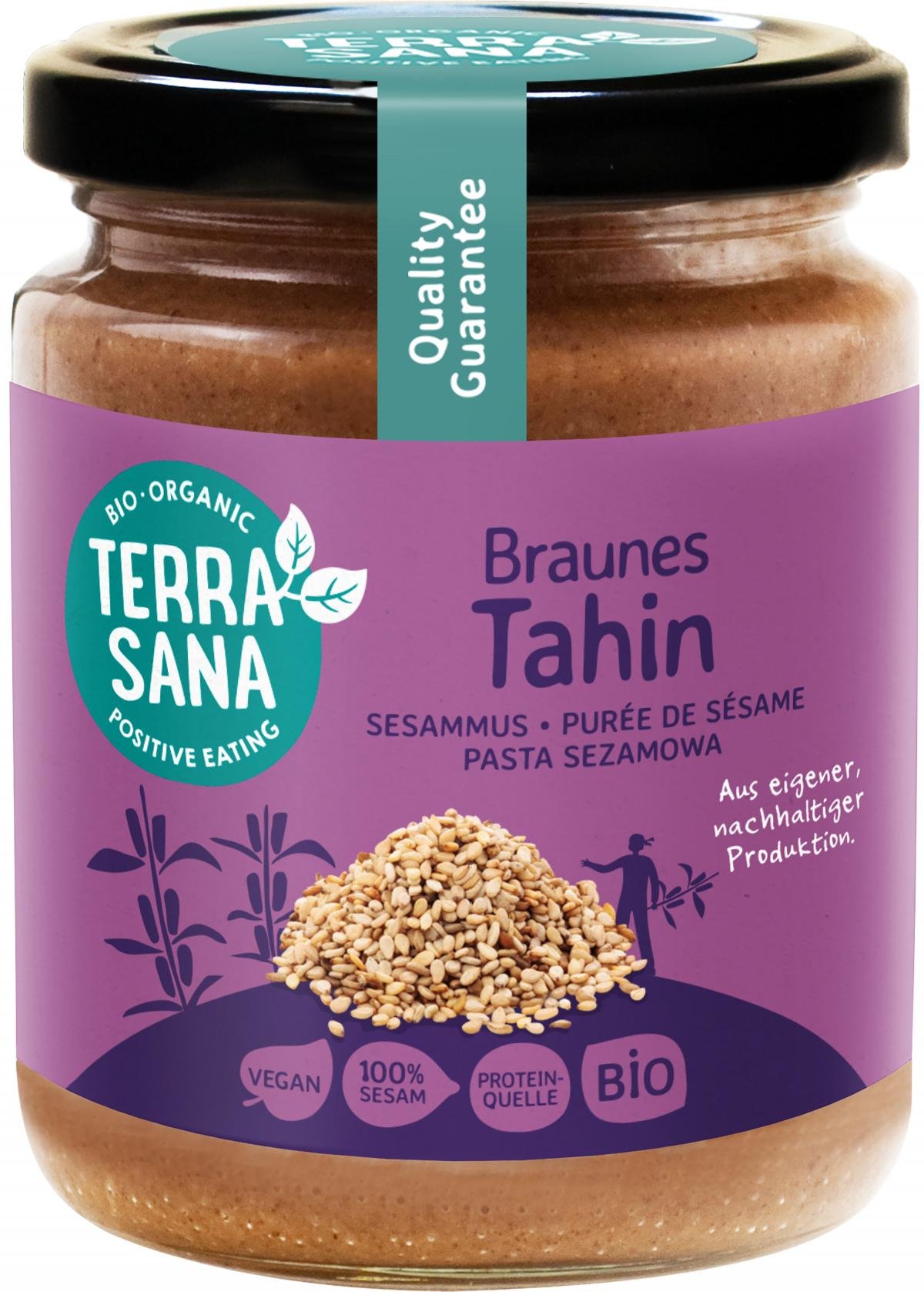 Dunkles Tahini wird aus 100% ungeschälten Sesamsamen hergestellt. Eine reine, biologische Sesampaste...