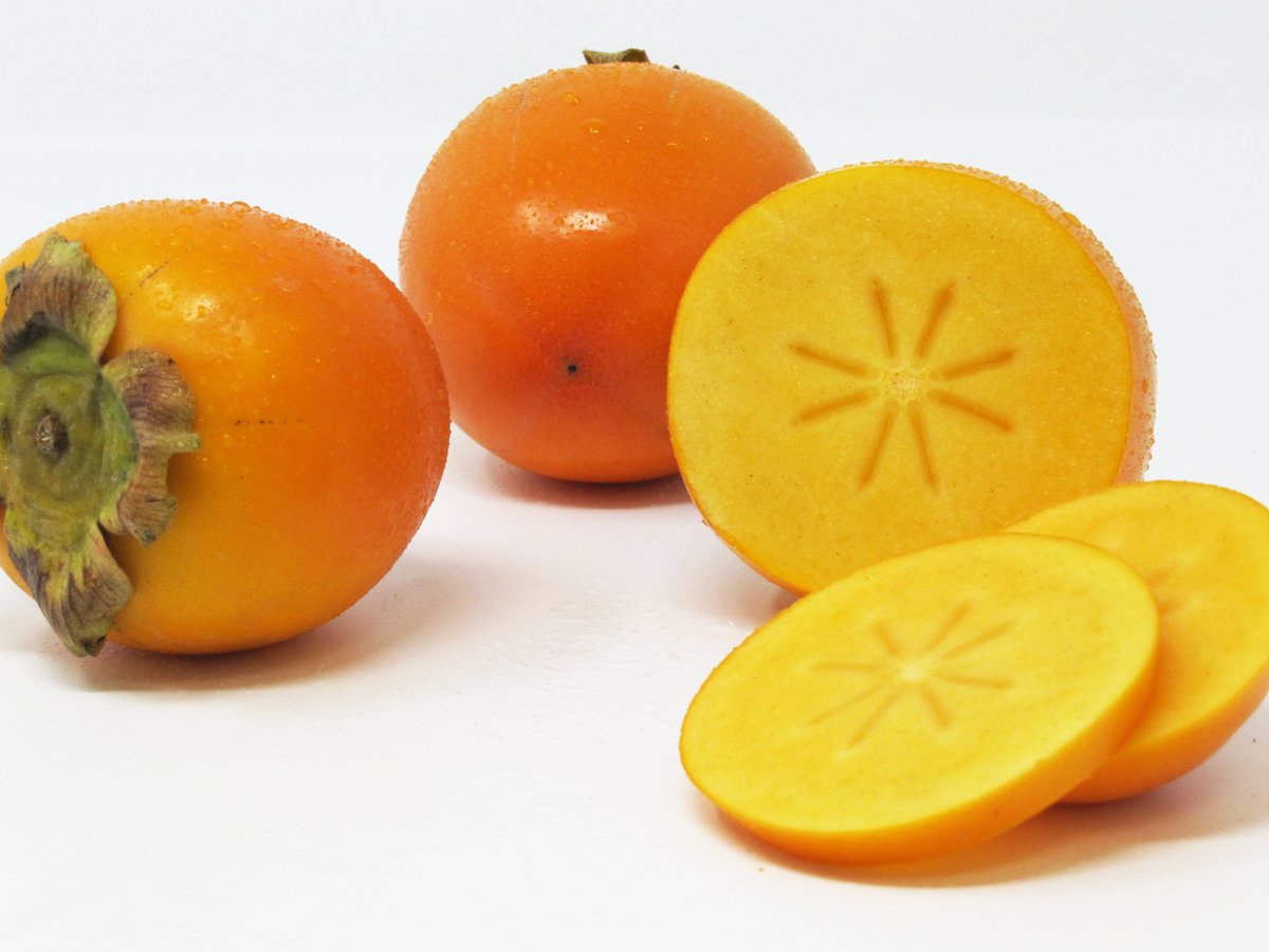 Das orangefarbene Fruchtfleisch von reifer Kaki schmeckt wie eine Mischung aus Tomate und Aprikose und dabei angenehm süß.
