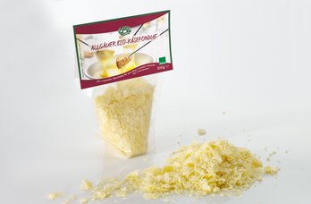 Unser überaus beliebtes ÖMA Allgäuer Käsefondue besteht aus drei hochwertigen Allgäuer Käsesorten, die nach einer 3-monatigen Reifezeit grob geraspelt und abgefüllt werden. Die fein abgestimmte Bioland-verbandszertifizierte Mischung ist eine exklusive ÖMA Geschmackskomposition, die alle Käsekenner bei feurigen Fondue-Abenden dahinschmelzen lässt. Die Zubereitung ist kinderlecht, einfach Packung aufmachen, geraspelten Käse in einen Fonduetopf füllen und langsam erhitzen. Je nach individuellem Geschmack kann man Weißwein oder auch Weißbier hinzugeben. Ein Original-Rezept für 2 Personen ist auf dem praktischen Stehbeutel für das Kühlregal zu finden. Verkaufstipp: Bieten Sie das Allgäuer Käsefondue sowohl über die Theke wie auch in Zweitplatzierung in Ihrem SB-Regal an.