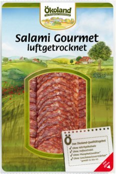 Edle Salamispezialität aus reinem Bio-Schweinefleisch. Kräftig im Geschmack. Die Salami wird in einem modernen Reiferaum luftgetrocknet und nicht geräuchert. Der echte Edelschimmel, die lange Reifung und die handwerkliche Pflege sorgen für eine feine Aromabildung und machen das Produkt lange haltbar. Ohne Nitritpökelsalz und ohne andere Zusatzstoffe hergestellt.