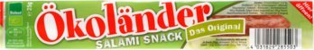 Die Salami Snacks von Ökoland werden aus hochwertigem Bio-Fleisch im Naturreifeverfahren hergestellt, d.h. sie werden ohne Zugabe von Hilfsmitteln einer Lufttrocknung unterzogen und anschließend geräuchert. Der Ökoländer original ist eine leckere Ergänzung zum Pausenbrot, für´s Picknick oder schmeckt auch einfach mal zwischendurch.
