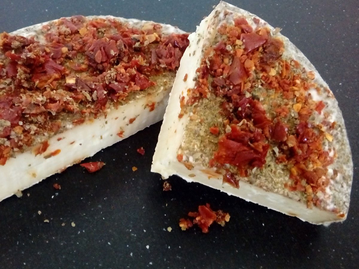 Berta Sonnengarten ist ein Weichkäse, der mit Tomaten, Paprika und Majoran verziert ist. Die Kräuter geben der Berta Sonnengarten einen sommerlich- frischen Geschmack. Unter der Reifung überwächst der Edelschimmel die Kräuter und der Käse wird zart und cremig.