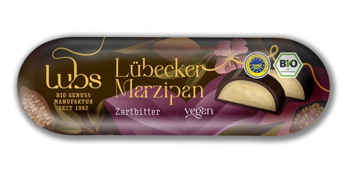 Lübecker Marzipanbrot mit Rohrohrzucker und Zartbitterschokolade, vegan
